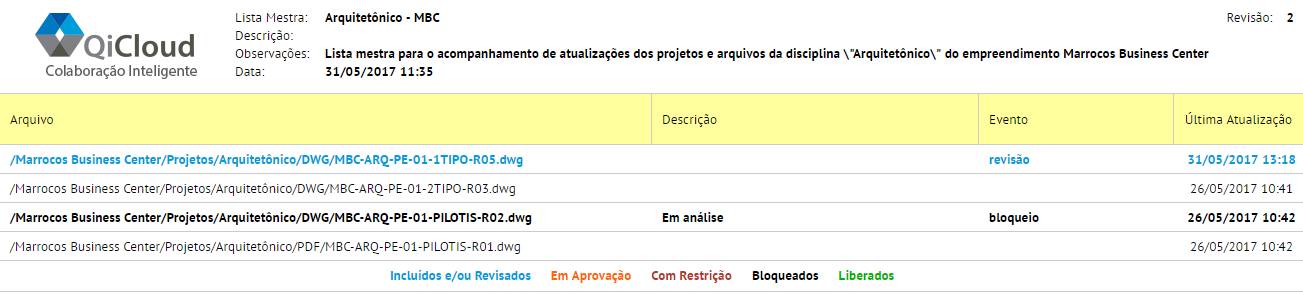 No auxílio dessa função, o usuário ainda conta com uma lista mestra eficiente para melhor orientação e desenvolvimento dos projetos. Além dessa função, o QiCloud fornece o domínio de status de cada empreendimento, através dos log’s gerados a cada ação aplicada aos projetos. Tal ação facilita o controle da gestão de processos e a rastreabilidade dos players e de suas ações.